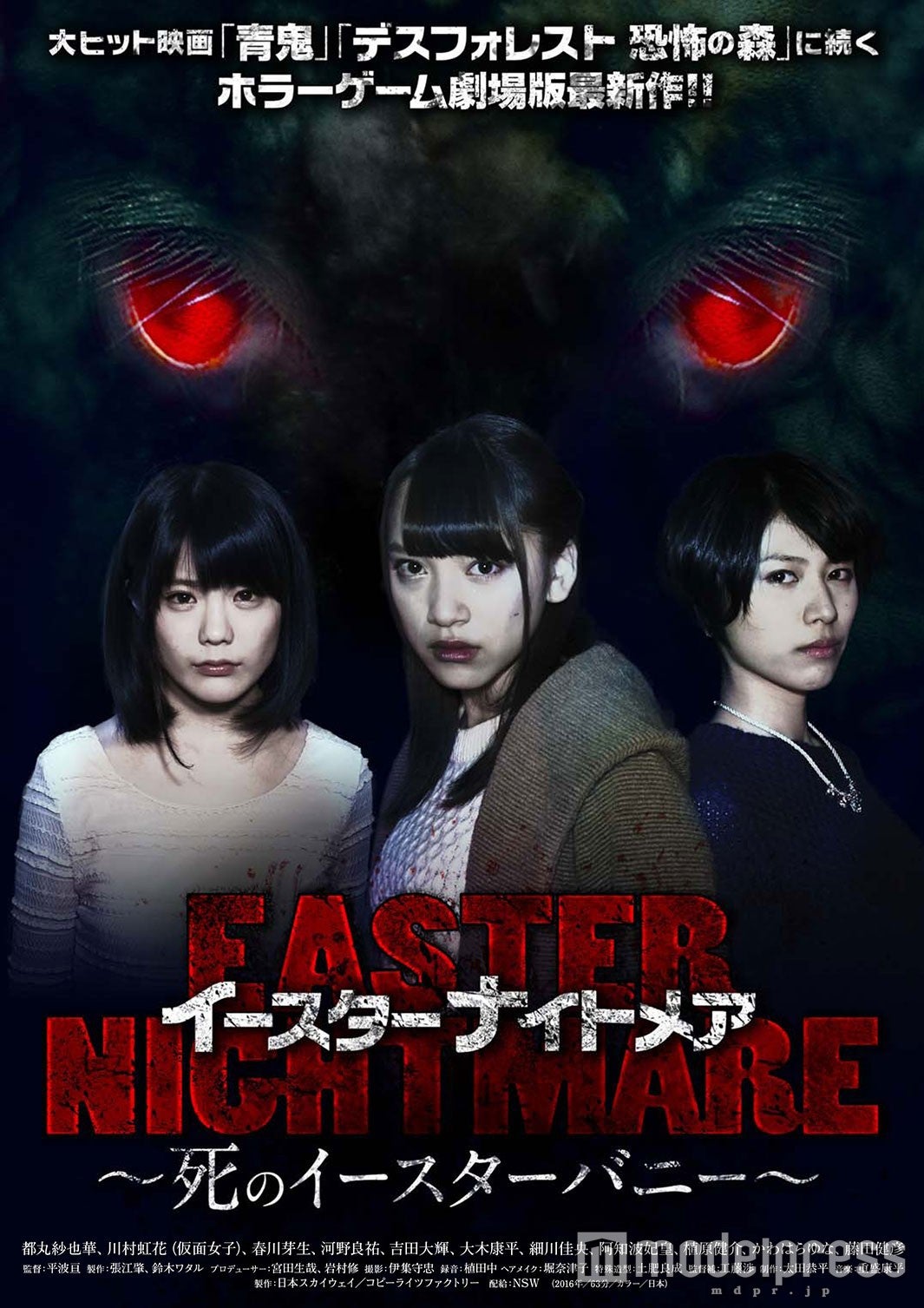 同作は『青鬼』『デスフォレスト 恐怖の森』『ハロウィンナイトメア』に続くホラーゲームの実写映画化第4弾。イースター(復活祭)をテーマに、主人公であるダンス部所属の女子高生・鈴谷佳奈子(都丸)に迫る恐怖を描く。メガホンを取るのは『東京戯曲』『ハッピートイ』の平波亘。共演にはアイドルグループ仮面女子の川村虹花や雑誌「二コラ」の第13回オーディションでグランプリを獲得した春川芽生が顔を揃える。