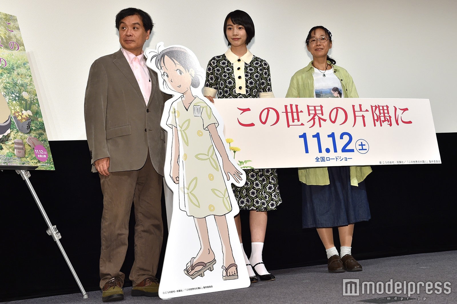さらに、片渕監督がたくさんの質問をのんから浴びたことを明かすと、当の本人は「すごくしつこかったですよね。しつこすぎて大丈夫かなって思っていたんですけど…ありがとうございます」と不安げな表情。しかし、片渕監督は「その質問に答える中で、自分でも作品の本質を捉えなおすことができた気がして、それがエンディングに反映されているんじゃなかと思います」と言い、「すずを単純に演じてもらうんじゃなくて、一度すずさんを理解する役回りをきちんとしていただいて、それがこちらにも跳ね返ってきて作品がすごくよくなったと思っています」と感謝した。(modelpress編集部)