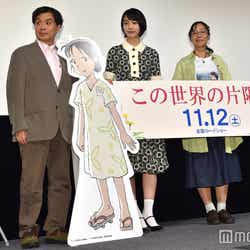 第13回文化庁メディア芸術祭優秀賞を受賞したこうの氏の同名マンガをアニメーション映画化した同作。第二次世界大戦中の広島・呉を舞台に、激化していく世の中で大切なものを失いながらも、前を向いていく女性・すず(のん)の姿を描く。初めてアニメ映画で主演を果たしたのんは、「戦争というものが1つの“モノ”としてあるんじゃなくて、生活の中に隣り合わせで入ってくるものだと、今回の作品で感じました」と語り、「普通の生活とか、普通に生きるということだけで涙がボロボロと出てくる素敵な作品だと思います。ご家族で見ていただけると、大切なものを共感できるのではないかと思います」とアピールした。