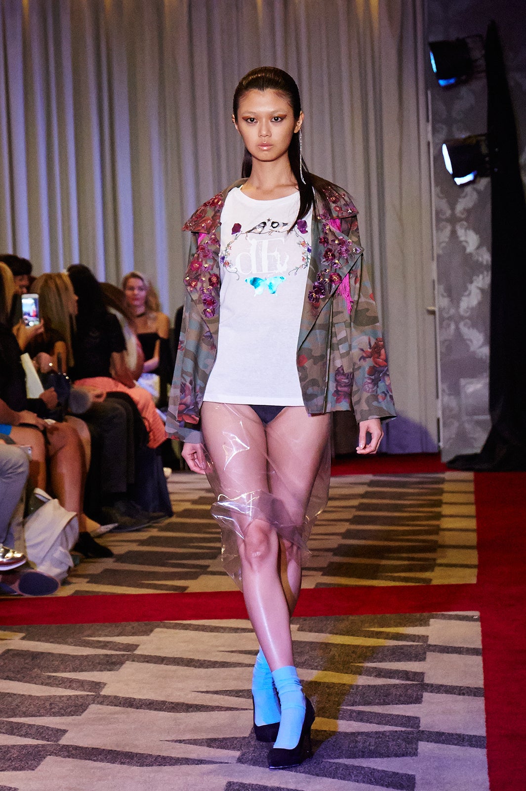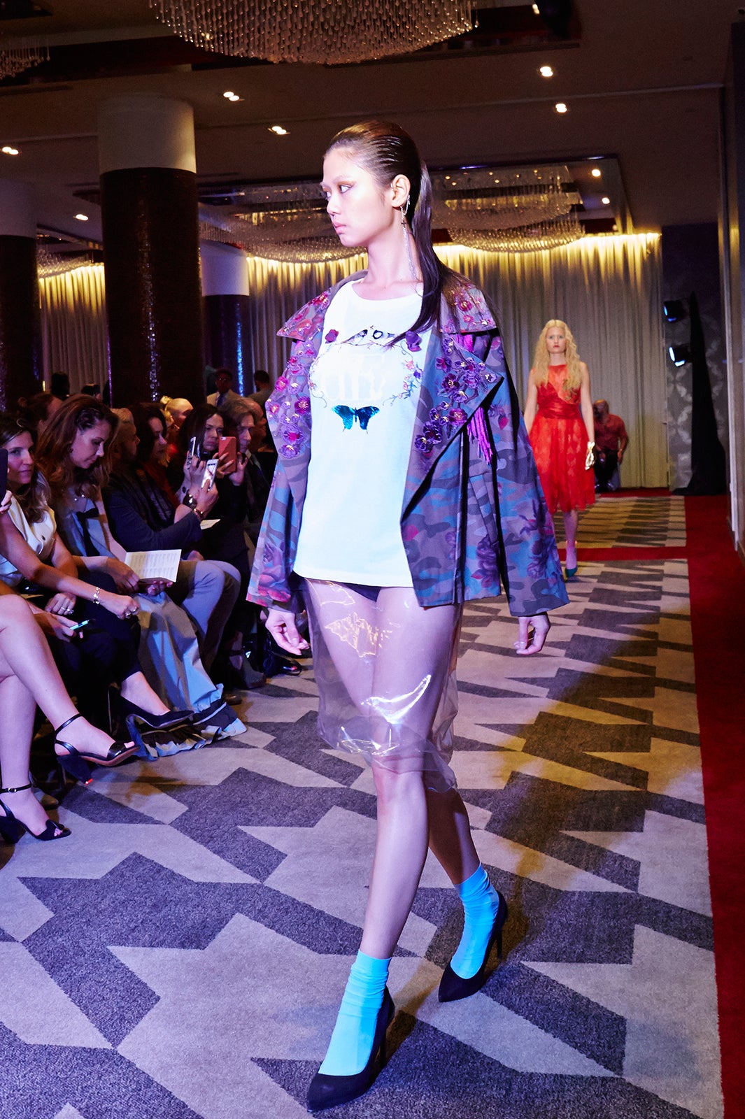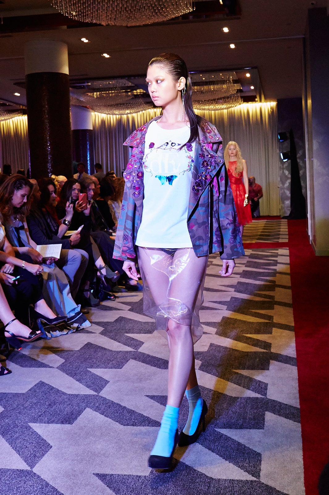 Iris:NYコレクションはとてもキラキラしてましたが、正直に言って、逃げ出したくなることもありました。初めのショーはJSongのランウェイでしたが、実はあまり覚えていません。あっという間に終わってしまいました。ただ、2本目のVICTOR dE SOUZAのショーの前にとてもナーバスになってしまいました。大きな会場で、大勢のトップモデルに囲まれているうちに、自信がなくなり弱音をはいてしまいました。最終的には気持ちを入れ替えて、2パターンの衣装を着て大舞台を乗り切れました。VICTOR dE SOUZAのショーはアフターパーティもあって、有名人も駆けつけていてとても華やかでした。
