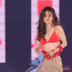 中村:ステージテーマに合わせて赤にしました。私、企業のイメージキャラクターとしていろんなところで身体を出す仕事が多いので、今日の(ビキニで歩く)ランウェイもそんなに抵抗がなかったのですが、潔くやりすぎちゃったかな(笑)。急だったので、ビックリされた方もいたかもしれないですね。