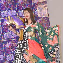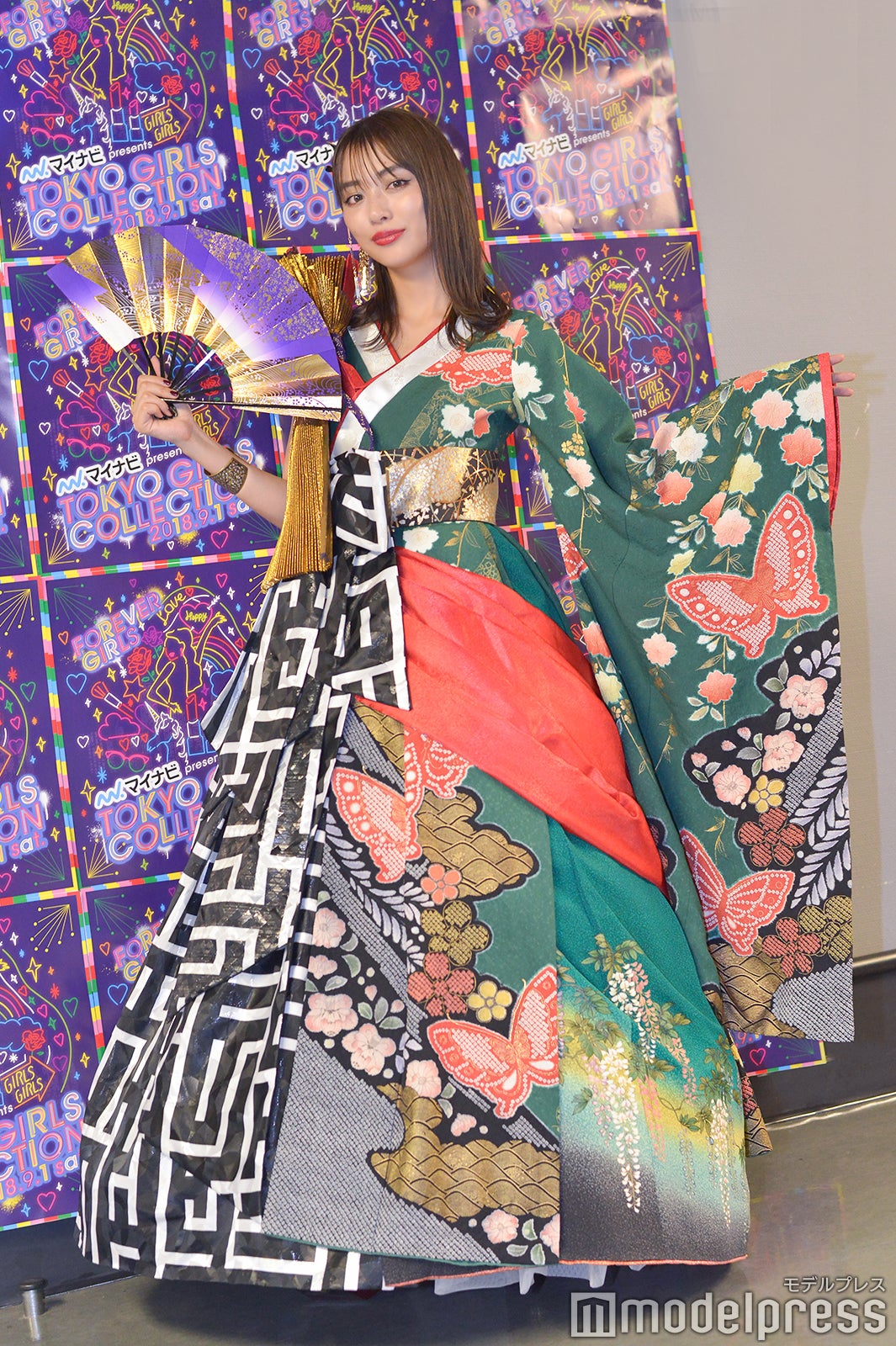 TGC初出演を果たした内田は、『TOKYO GIRLS COLLECTION Super Live-MATSURI-』ステージに登場し、緑、赤、黒を基調とした和装に身を包み花魁姿を披露。メイリア(GARNiDELiA)のライブパフォーマンスに合わせ、妖艶なステージを届けた。