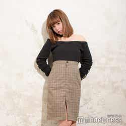 かげとら:私はやっぱ秋なのでチェック。あと、オフショルとか肩が出るのがすごく好きです。オフショルって降りてきちゃうのが嫌なんですけど、今日のはチョーカーと繋がっていて降りてこなくて好きです。普段は、ガーリー系よりかはちょっと強めな服装が好きです。