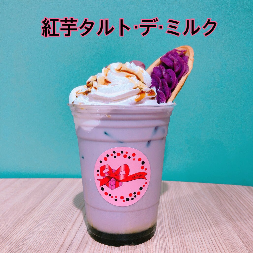 ami:紅芋タルト・デ・ミルクです。これは観光の方にもぴったり。紅芋タルトとちんすこうが2本、豪快に刺さっていて。見た目も可愛いし、紅芋ミルクも美味しく作っているつもりなので、本当におすすめです。沖縄っぽくてお腹もいっぱいになります。