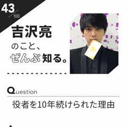 NHK朝の連続テレビ小説『なつぞら』や映画『キングダム』などで目覚ましい活躍を見せる俳優の吉沢亮(25)が2019年にデビュー10周年を迎えたことを記念し、モデルプレスはアミューズ公式モバイルサイト・アミューズモバイル(以下:アミュモバ)とのコラボ企画を実施。「吉沢亮のこと、ぜんぶ知る。」と題して、吉沢のあれこれに迫る《100問100答》インタビューを行った。【5】