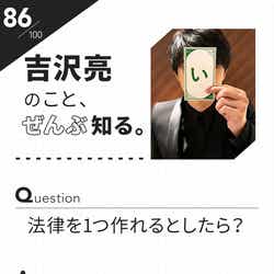 事前に読者からの質問募集も行った100問100答は、【1.吉沢亮・解体新書】【2.吉沢亮の日常-Ⅰ】【3.吉沢亮の恋愛観】【4.吉沢亮の日常-Ⅱ】【5.役者・吉沢亮-Ⅰ】【6.役者・吉沢亮-Ⅱ】【7.吉沢亮のルーツ】【8.吉沢亮のマインド】【9.もしも吉沢亮が○○だったら】【10.吉沢亮の未来】の全10ジャンル。1・3・5・7・9はモデルプレス、2・4・6・8・10はアミュモバにて順次公開していく。