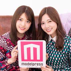 ともに1期生で年齢も同じ2人は、プライベートでも仲が良く、“さゆまい”としてファンからも親しまれている鉄板ペアで、モデルプレスにとっても今回満を持しての2ショット取材が実現。メインビジュアル撮影後の2人を直撃した。写真撮影中は終始密着し、心許し合う仲の良さを見せてくれ、「見つめ合って」とお願いすると、松村が白石を至近距離で凝視。それに照れた白石がピースサインを出すと2人で息ぴったりにポーズ。言葉を交わさなくても心が通じ合っていた。
