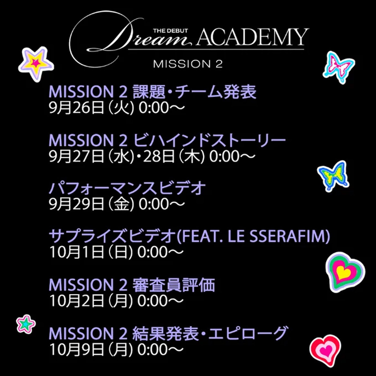 「The Debut:Dream Academy」は、BTSやLE SSERAFIM、NewJeansらを擁する韓国の大手エンターテインメント企業「HYBE」と「Geffen Records」によるアメリカを拠点とするグローバルガールグループのメンバーを決める番組。練習生たちは3つあるミッションラウンドごとにダンスやボーカル、チームワーク、コンセプトなど与えられたミッションを遂行していき、グローバル視聴者投票と審査員評価を総合した結果を基に、次のラウンドへの進出可否が決まる。現在Weverseで行われているMISSION2“TEAM MISSION”の投票期間は9月29日0時から10月3日15時59分までとなっている。