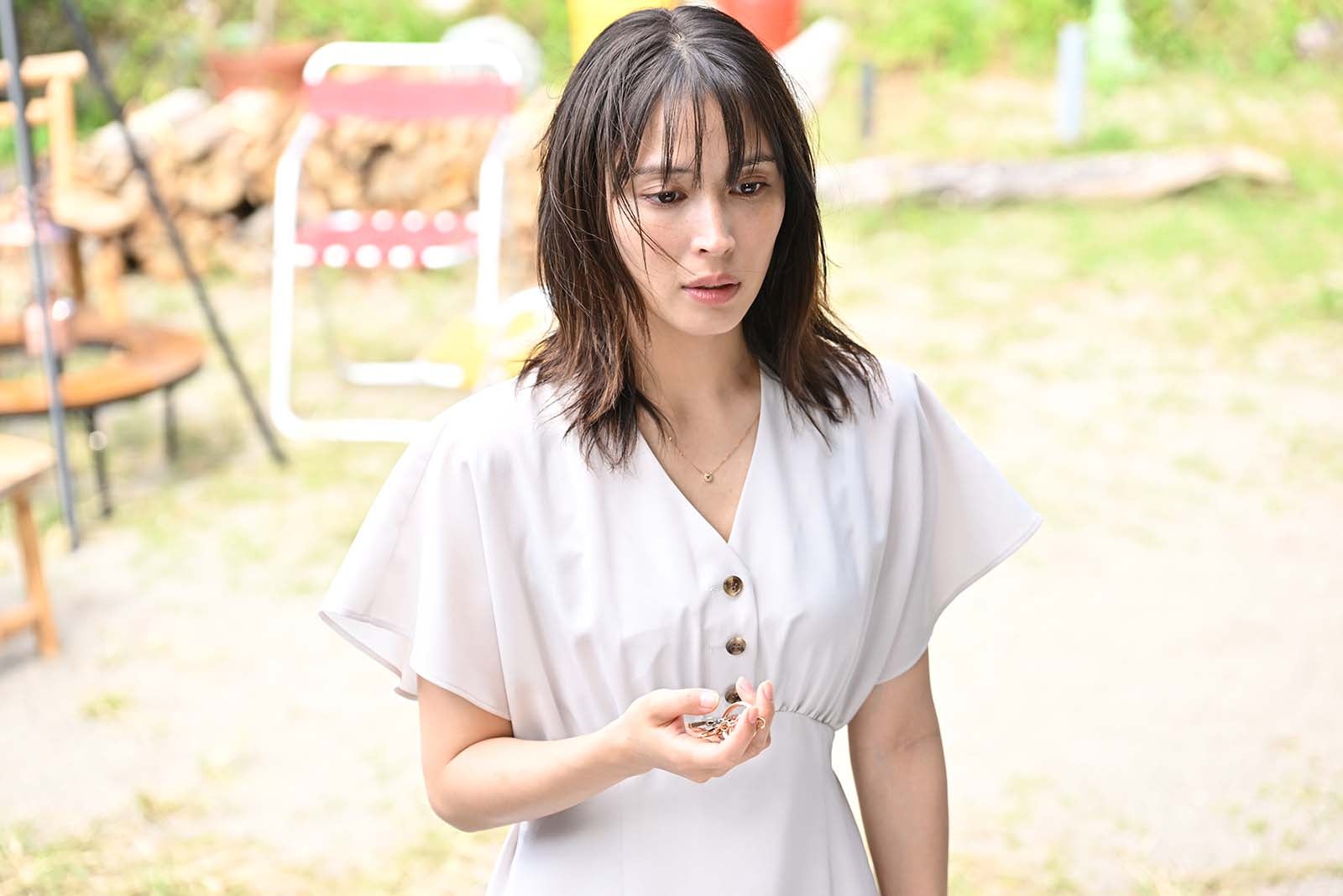 それと、今までずっとパンツだった佐弥子が5話ぐらいからスカートを履くようになっていくんです。私は「佐弥子ラブエディション」と呼んでいるのですが、30代女性ならではの大人っぽいテイストで、「恋したら“女”出します」といった雰囲気になるように、今までつけていなかったネックレスやピアスも毎日しっかり身につけるようにしました。また、“若見え”もかなり意識しています。佐弥子は口では「気にはしない」と言いつつ、10歳も離れた彼氏の横にいたら心の奥底では絶対に(年齢差を)気にしていると思うんです。そういった心情も映せるよう、なるべく若さを出したコーディネートに展開しています。最初は落ち着いた大人のゆるっとしたスタイルだったものを、デコルテの開きを少し大きくさせるなど、気づく人は気づくぐらいの微妙な変化をつけています。