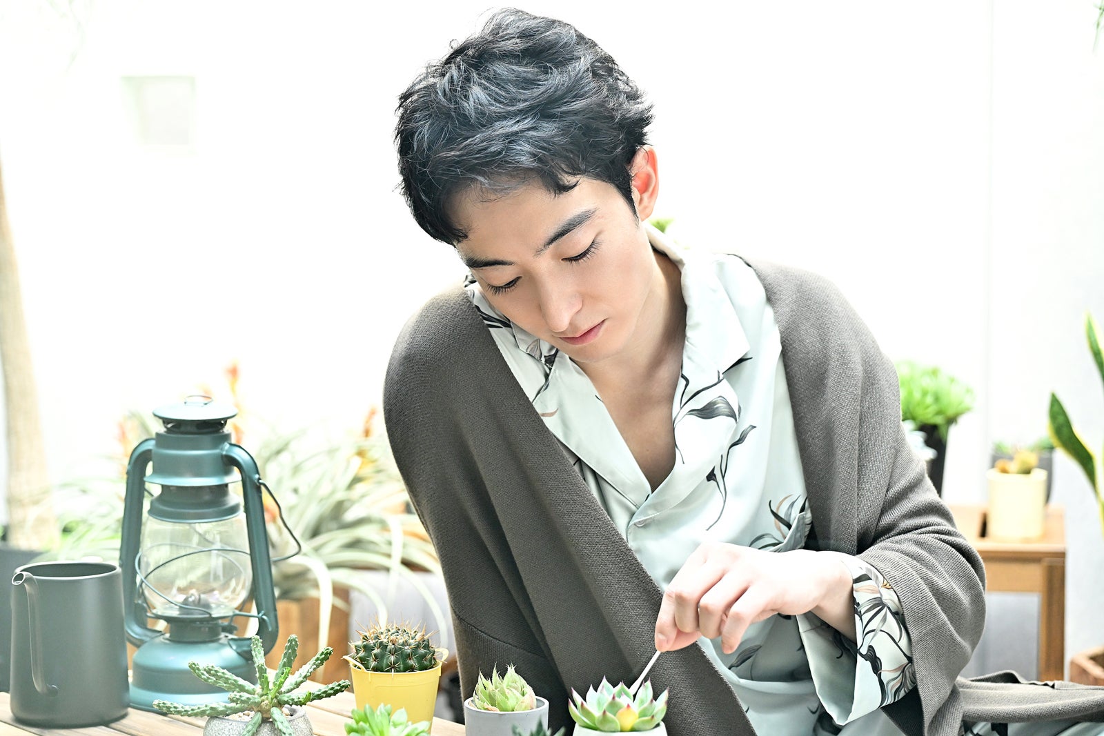 専門用語がたくさん出てくるので、撮影期間中は、日常的に扱えているように日々、毎日呟いて生きていました。また、裁判シーンもあるので、実際の裁判を傍聴しに行きました。リアルな裁判の流れを知ることができましたし、弁護士や検事の方、裁判官たちも、喋り方や所作、テンション感は人それぞれ多様だったので、あまり決めつけ過ぎずに臨めました。ドラマチックな演出になっている部分は、志波らしさを最も重視して演じました。志波は心の声がとてつもなく多いので、心でつぶやきながらも会話は続いていくという芝居がたくさんあり、それが楽しくもあり大変でもありました。更には多肉植物とも会話します。当然のように多肉は声を出してくれないので、ちゃんと会話をしているような間を自分で感じて作っていました。