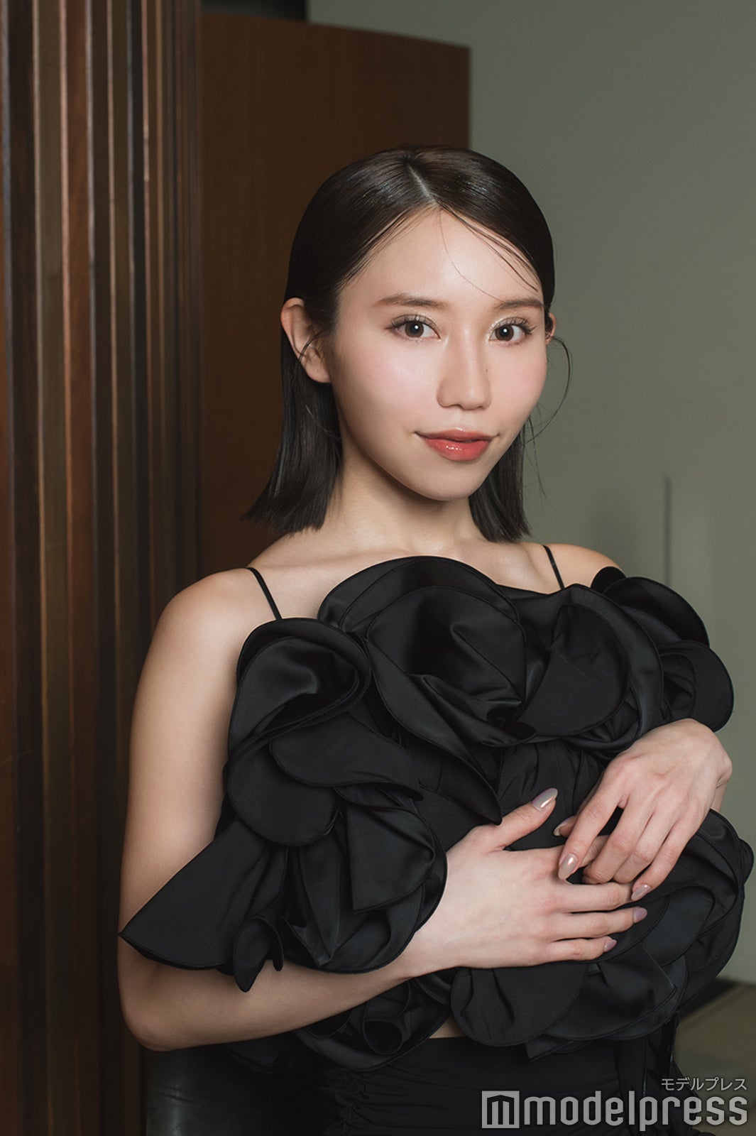 ばんばんざい・みゆ、デコルテのクロスがSEXY スレンダーさ際立つタイトワンピで登場【関西コレクション 2024 A/W】モデルプレス