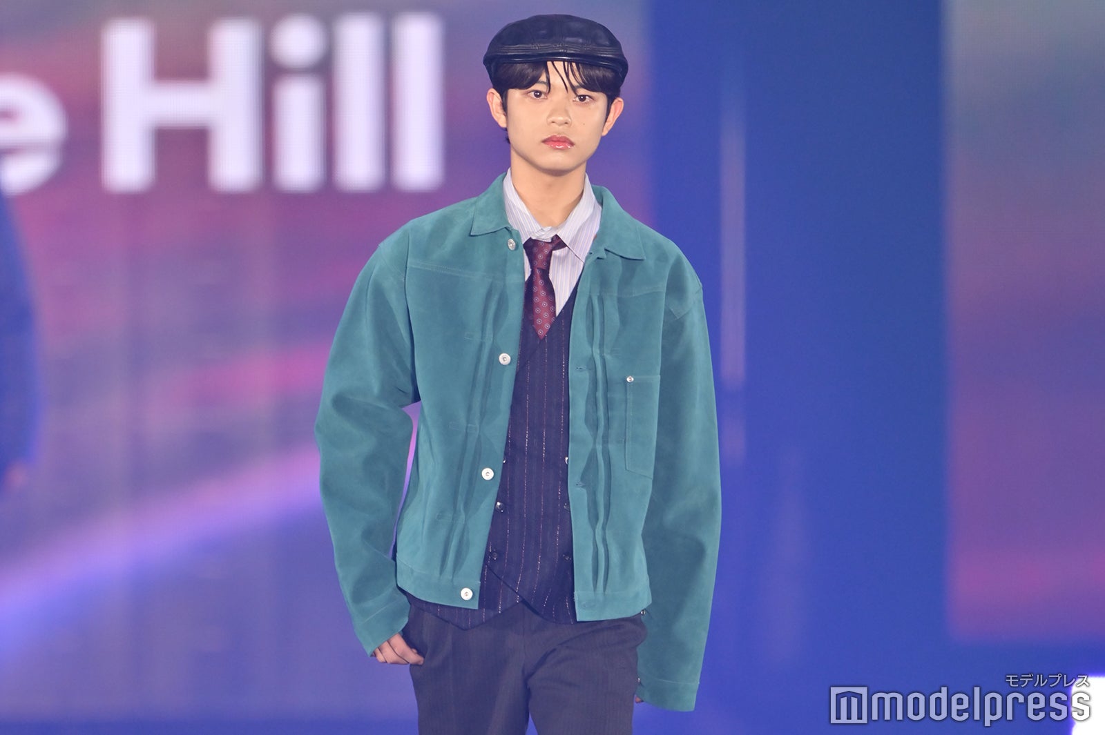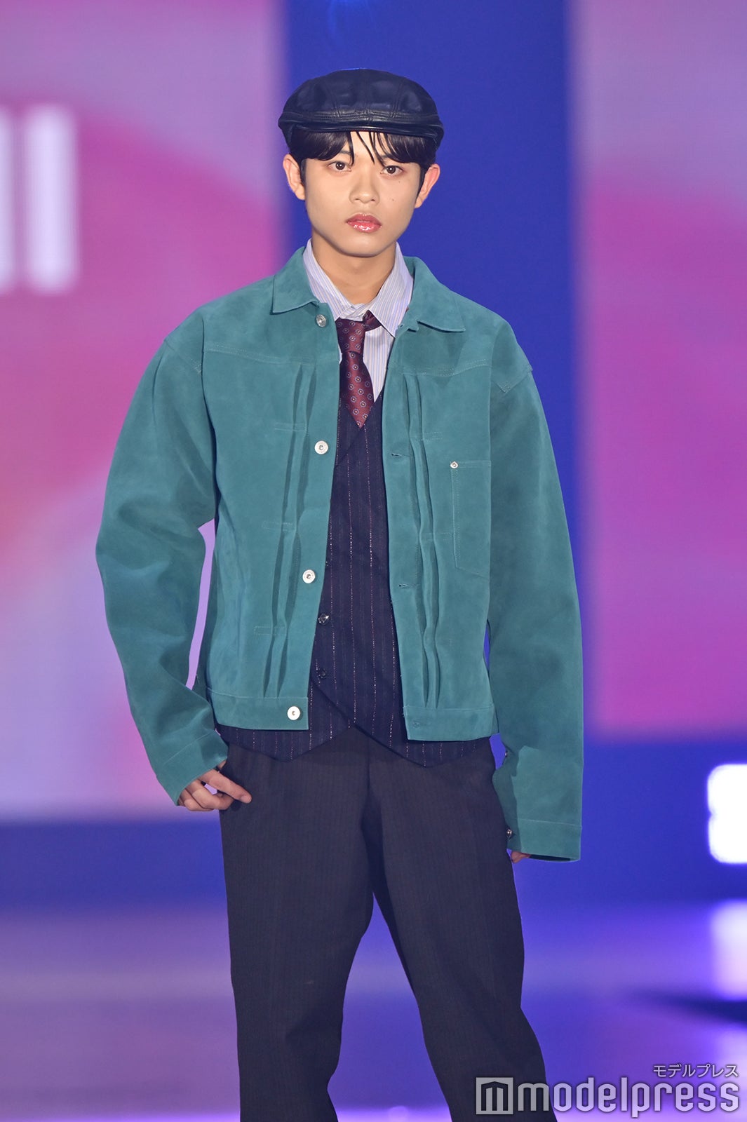 人生初となるランウェイでは、ハンチングを使いこなし、堂々とウォーキング。初舞台に挑む前に、所属する舘プロの大先輩・舘ひろしからはアドバイスをもらったという。「今回が人生初のランウェイで、メイク室だったりフィッティングだったり、何もかもが初めてで、そういうのを含めてすごく面白かったし良い経験になったし幸せでした。今回お話をいただいたとき、、まず舘さんに『僕、右足と右手が一緒に出ちゃうけど大丈夫ですかね』と相談したんです。そしたら舘さんが『僕もやったことあるし、すごく良い経験になると思うから、なんでも1回はチャレンジしてみた方がいいよ』と後押ししてくれて、やろうと決めました。毎回会うたびにランウェイの話をしてくれて『想矢は俳優なんだから自分らしくでいい。普段のコーデとかもシンプルでいいんだよ』と色々アドバイスをくださいます」