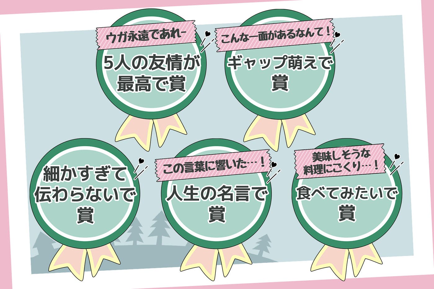 SNSでの推し場面の投稿も盛り上がる中、モデルプレスが投票を行ったのは「ウガ永遠であれ― 5人の友情が最高で賞」「こんな一面があるなんて!ギャップ萌えで賞」「細かすぎて伝わらないで賞」「この言葉に響いた…!人生の名言で賞」「美味しそうな料理にごくり…!食べてみたいで賞」の5つ。全4話から選ばれたシーンとは―?ウガ永遠であれ― 5人の友情が最高で賞