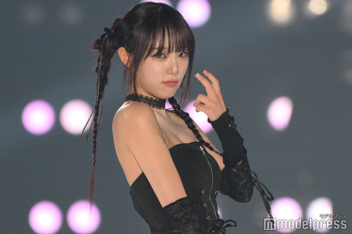 IZ*ONE出身イェナ、輝くデコルテに釘付け 三つ編みヘアでギャップ魅せる【関西コレクション 2024 A/W】