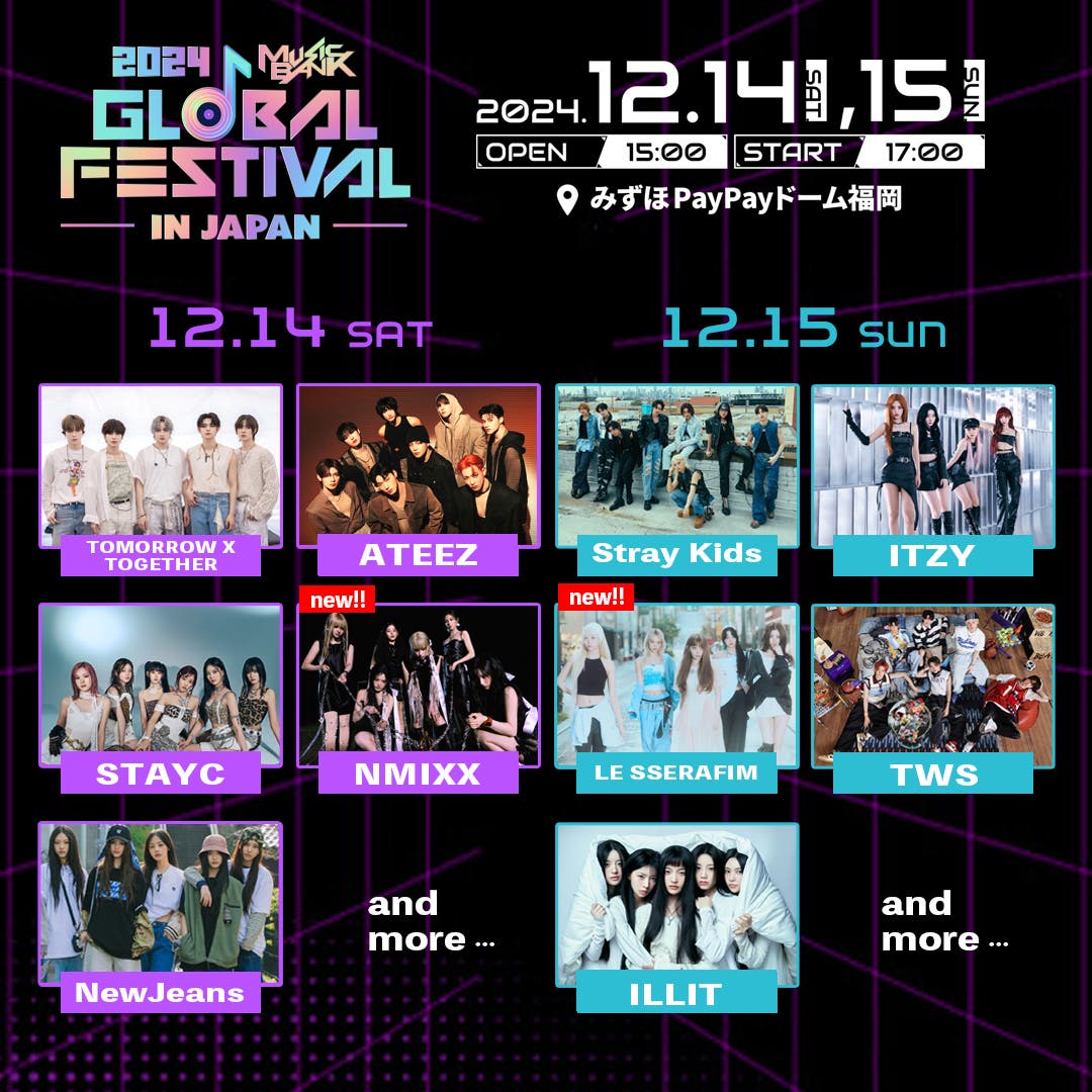 12月14日・15日の2日間、みずほPayPayドーム福岡にて開催されるK-POP大歌謡祭「2024 MUSIC BANK GLOBAL FESTIVAL in JAPAN」の第2弾追加アーティストとして、LE SSERAFIM(ルセラフィム)とNMIXX(エンミックス)の出演が決定。各日程ごとの出演アーティストも発表された。