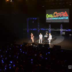 オープニング、お揃いのスーツ姿で登場した2人がレトロディスコなナンバー「Oppa,Oppa」を披露すると会場のボルテージは最高潮に。MCから同シングルがオリコンウィークリーチャート2位を獲得したことを告げられると、ドンヘは「ここまで2人のユニット活動が広がるとは思っていませんでした。最近はELF JAPAN(=日本のファンクラブ名)の会員が増えているといういい知らせを聞いて気分がいいです」と笑顔を見せた。