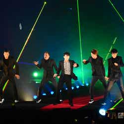 約7時間にわたるイベントの大トリを飾ったV.Iは、3万人の観客から黄色い歓声を浴びながら「LET’S TALK ABOUT LOVE」「STRONG BABY」をパフォーマンス。ブラックのスーツにこの秋トレンドの千鳥格子柄シャツを合わせたコーディネートでダンサーと共にクールなステージを繰り広げた。