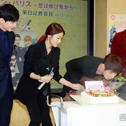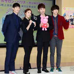 ギュリは劇中でショートカットの男装姿を披露しており、この日もブラックのマニッシュなスタイリングで登場。「男装のまま、明洞という賑やかな街に食事のために行きましたが、全然誰も気づかなくてビックリしました。プライベートのときも、かつらをかぶったまま行ったらどうかなぁと思いました」とエピソードを明かすと、チョンドゥン(MBLAQ)も「とってもカッコイイです。KARAの時とは違う姿を見ることができました」と絶賛した。