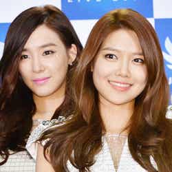 少女時代の出番が目前に迫ると、会場はピンク一色のペンライトが揺れ、“レッツゴー!ソニョシデ!”の大コールが巻き起こる。すると前方スクリーンに彼女たちのオープニングVTRが流れ、会場はさらにヒートアップ。そんな中、ステージ中央に姿を現した彼女たちは「MR.TAXI」「PAPARAZZI」と立て続けにヒットナンバーを披露し、いきなり観客の心を掴んだ。スヨン「みなさん盛り上がっていますかー?」