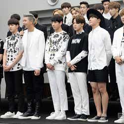 HOMME(オム)のチャンミンは音楽を通じて分かち合いの精神を発信する同公演に際して「僕らの声で癒やすことができれば一番。今日も本当に頑張りたいと思います」と意気込み。防弾少年団のRAP MONSTERは世界で愛されるK-POPの魅力を聞かれ「K-POPは本当にエネルギーが行き交うものだと思います。色んな国に行って、その国の言語で音楽をやってもすごく楽しんでくださっているし、お互いにエネルギーを行き交わせていると思う。そういった部分がかっこいいので、これからもそれを大切にしながらK-POPをやっていきたい」と話した。