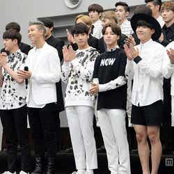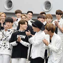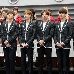 13日、「『SHOW CHAMPION』 Special KMF2015」(神奈川県・横浜アリーナ)開催前に同所で記者会見が行われ、CNBLUE、防弾少年団、U-KISS、HOMME、NU’EST、MR.MR、MADTOWN、LABOUMの出演者全8組が顔を揃えた。