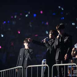防弾少年団は「スペシャルな日なので、日本の曲を2つ用意しました!」(RAP MONSTER)と「チョアヨ PT.2」「For You」など、全5曲をパフォーマンス。鳴り止まぬ黄色い歓声に応えるように「心の中にいる皆さんのおかげで僕らは努力することができました。僕たちはもっと努力して、いいパフォーマンス、いい音楽を皆さんにお聞かせしたいです!」(RAP MONSTER)と力強くメッセージを送った。