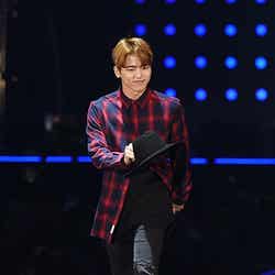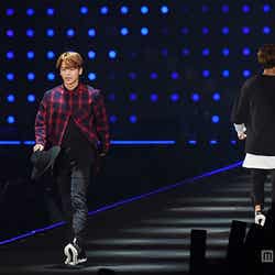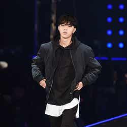 セヨンはランウェイ先端で逆立ちのアクロバティックなポージングを決め、磨き上げられた身体能力で約3万人の観客から歓声を浴びた。続いてチェジン、インス、ジュンQ、コヌがシックなブラックでまとめた秋冬コーディネートで登場。ライブステージとは異なる魅力をアピールした。