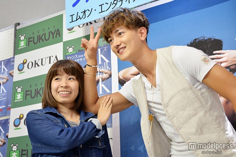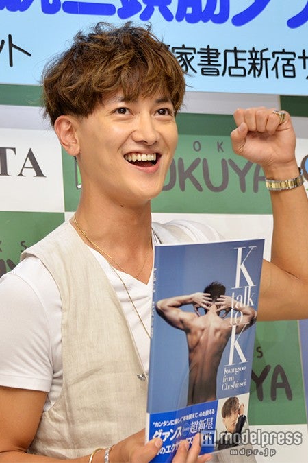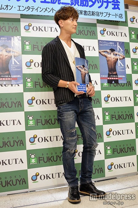 11日、東京・福家書店にて自身初となるエクサイズ・ブック「K talk to K」(発売中/エムオン・エンタテインメント刊)の発売イベント『上腕二頭筋タッチ会』&『2ショット上腕二頭筋肉タッチチェキ会』 を開催。イベント前に取材に応じた。