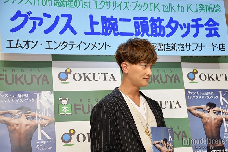 この日は1000人以上のファンが集結し、ストイックな日々のトレーニングで培われた、しなやかな筋肉美に直接触れる貴重な機会となったが、同日午前中に宮城県・仙台でも同じイベントを行ったグァンスは近距離でのファンとの交流の感想を問われると、「最初は僕も恥ずかしかったんですけど段々慣れて楽しくなってきた」と笑顔。「ファンの皆さんが触るのはなかなかないから、自分の筋肉をシェアするという気持ちです」と話し、「胸筋タッチ会とか第二弾でやりたいと思います」と2冊目にも意欲を示していた。