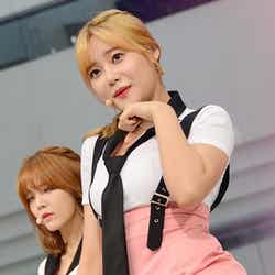AOAは15日、都内にて日本1stアルバム『Ace of Angels』リリース記念イベントを開催。限界ギリギリの極上ミニスカートとネクタイの衣装で色気たっぷりに登場し、リードシングルとなる『Oh BOY』をファンの前で初パフォーマンスした。