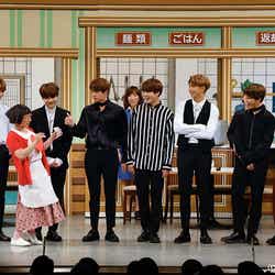また、最後には新シングル「血、汗、涙」のダンスを披露。出演後「めちゃ楽しかったです」(J−HOPE)、「今日のギャグありがとう」(SUGA)などとコメントした防弾少年団には、吉本新喜劇座長・すっちーから「ズッコケが素晴らしい。100点!若手ではなかなかいない」と絶賛の言葉が送られていた。