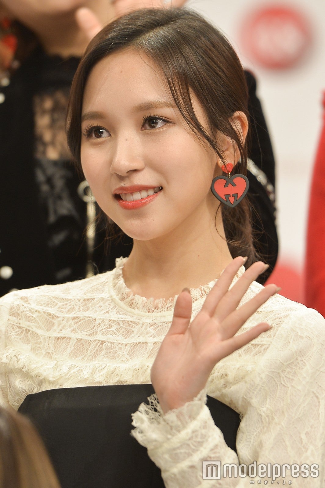 日本人メンバーのミナ(兵庫県出身)、モモ(京都府出身)、サナ(大阪府出身)をはじめ韓国、台湾出身のメンバーで構成された9人組。TWICEは紹介されると、全員で揃って挨拶。サナが代表して「今日は朝早くからわざわざ足を運んでいただきありがとうございます。私たちTWICEは日本デビューをしてまだ間もないにも関わらず紅白歌合戦に出場させていただくことになって本当に光栄です。皆さんにTWICEを知っていただけるように頑張りたいと思います」と心境を語った。ミナ、ファンに感謝