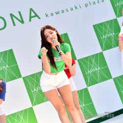 韓国の9人組ガールズグループ・MOMOLANDが13日、神奈川県・ラゾーナ川崎ルーファ広場にて、日本デビューシングル発売記念フリーライブを開催。一時ファンが押し寄せ騒然となる場面があった。