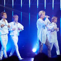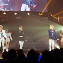 続く『MOVIE STAR』では、“I’m a movie star.”とそれぞれが自分に言い聞かせるように、ファンの美しい合唱が会場にこだまする。そして4人の“子供の頃の妄想”がテーマのキュートな映画風VTRが流れると、今度は赤と黒の衣装に身を包んだ4人が再登場。『IMMATURE』『LOVE ME LOVE ME』『SPECIAL NIGHT』でエネルギッシュに盛り上げた。またツアーファイナルということで、全国各地を巡った今回のツアーで「一番思い出に残っていること」を1人ずつ話すことに。