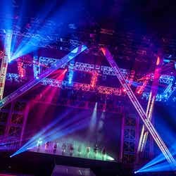 JAPAN 1st ALBUM『BDZ』をひっさげた同ツアー。オープニングからスタイリッシュな映像で、これまでとは違うTWICEを感じさせる映像でその世界観へと誘った。青と赤の対象的なカラーが点滅する中、ゆっくりとメンバーが姿を現し、いきなり激しいダンスパフォーマンスで魅せる。それぞれの魅力が存分に詰まったTWICEの真骨頂とも言えるダンスチューン「Wake Me Up」でステージはスタート。続く「I’m gonna be a star」では炎を大胆に使った演出でセクシーな一面を見せる。ステージ前方では火柱が吹き上がり、場内の熱気をさらに熱く燃え上がらせた。