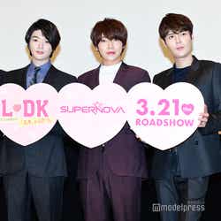超新星から改名したSUPERNOVA(ユナク、ソンジェ、グァンス、ジヒョク、ゴニル)が17日、都内で開催された映画『『L・DK ひとつ屋根の下、「スキ」がふたつ。』(・はハートマーク/3月21日公開)の舞台挨拶に登壇した。