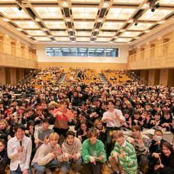 次はいよいよ本題となる「Simon Says」のレッスンに。まずNCT 127がお手本を見せることになるが、テヨンは最初1人で学生たちに紛れ、学生のふりをして「頑張れー!」とメンバーに声をかけるという茶目っ気も発揮。パフォーマンスが始まると、目前で繰り広げられる迫力たっぷりのダンスに学生は大興奮。MCのザブングル・松尾陽介も、「これはすごいね…」と言葉を失うほど。「コンサートでもこんなに近いことはありません」とメンバーが言うほどの距離感でパフォーマンスを目の当たりにし、学生たちにとってはまさに夢のような時間となった。