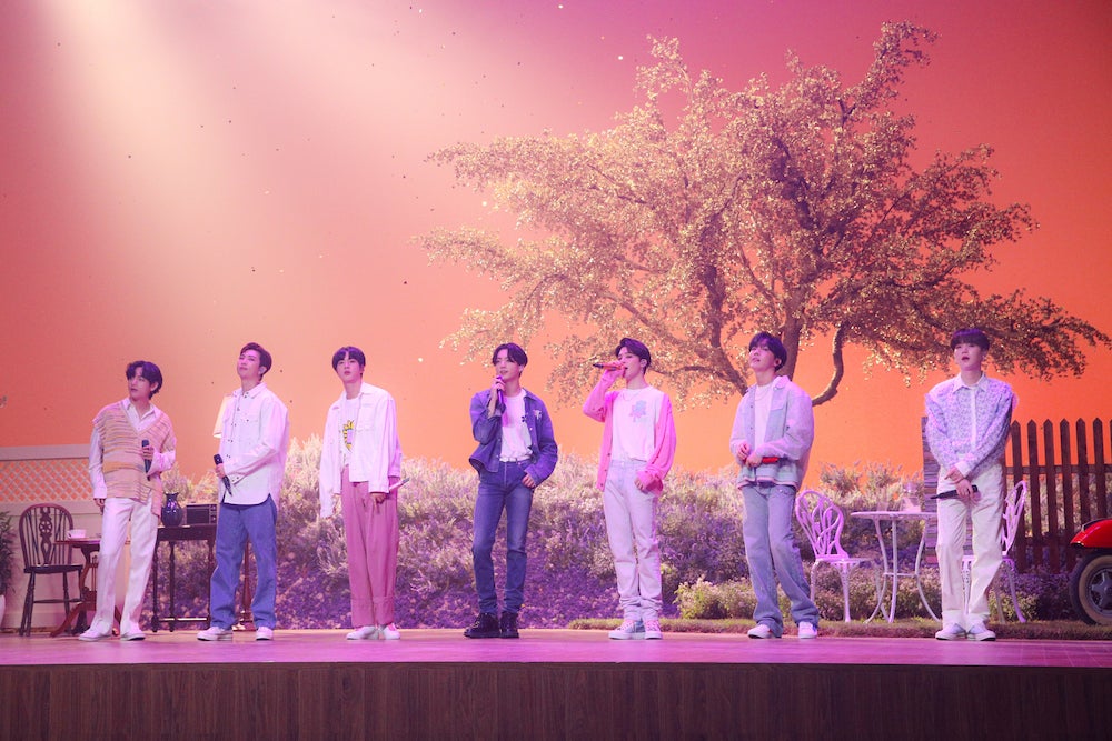 イベントは「ファンの皆さんにとても会いたかった」という挨拶からスタート。同作の中でも日本、アメリカ、イギリス、イタリア、ブラジル、ロシアなど97の国と地域で反響を呼んだヒットナンバー「Your eyes tell」。そして、同作のリード曲で、ミュージックビデオのYouTube視聴数が7500万回以上を記録している「Stay Gold」を生歌唱した。BTS、アルバムへの反響にコメント