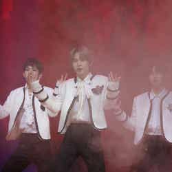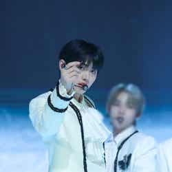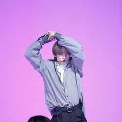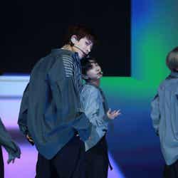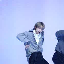 NI-KI:境界線に立たされた少年が、世界に向かっていく強い意志をエネルギッシュなパフォーマンスで表現しました。パワフルなキレキレダンスに、繊細な動作が加わりました。始まりは世界に向かって目を開くような振り付けになっています。(その場で振り付けを披露)。以降は、僕たち7人のメンバーが1つのエンジンになり、エンジンをかけるような様子をスローモーションで表現しました。最後には世界に向かって矢を放ち、大きく足を蹴る振り付けもあります。