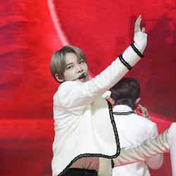 JAKE:ENHYPENのJAKEです。4世代のアイドルの中で、“新しい人気グループ”という修飾語を聞きたいなと思います。多くの先輩方がいらっしゃり、先輩方のステージで学んでいますが、4世代のアイドルとして素敵な音楽とパフォーマンスで、精一杯後を継ぎたいと思います。