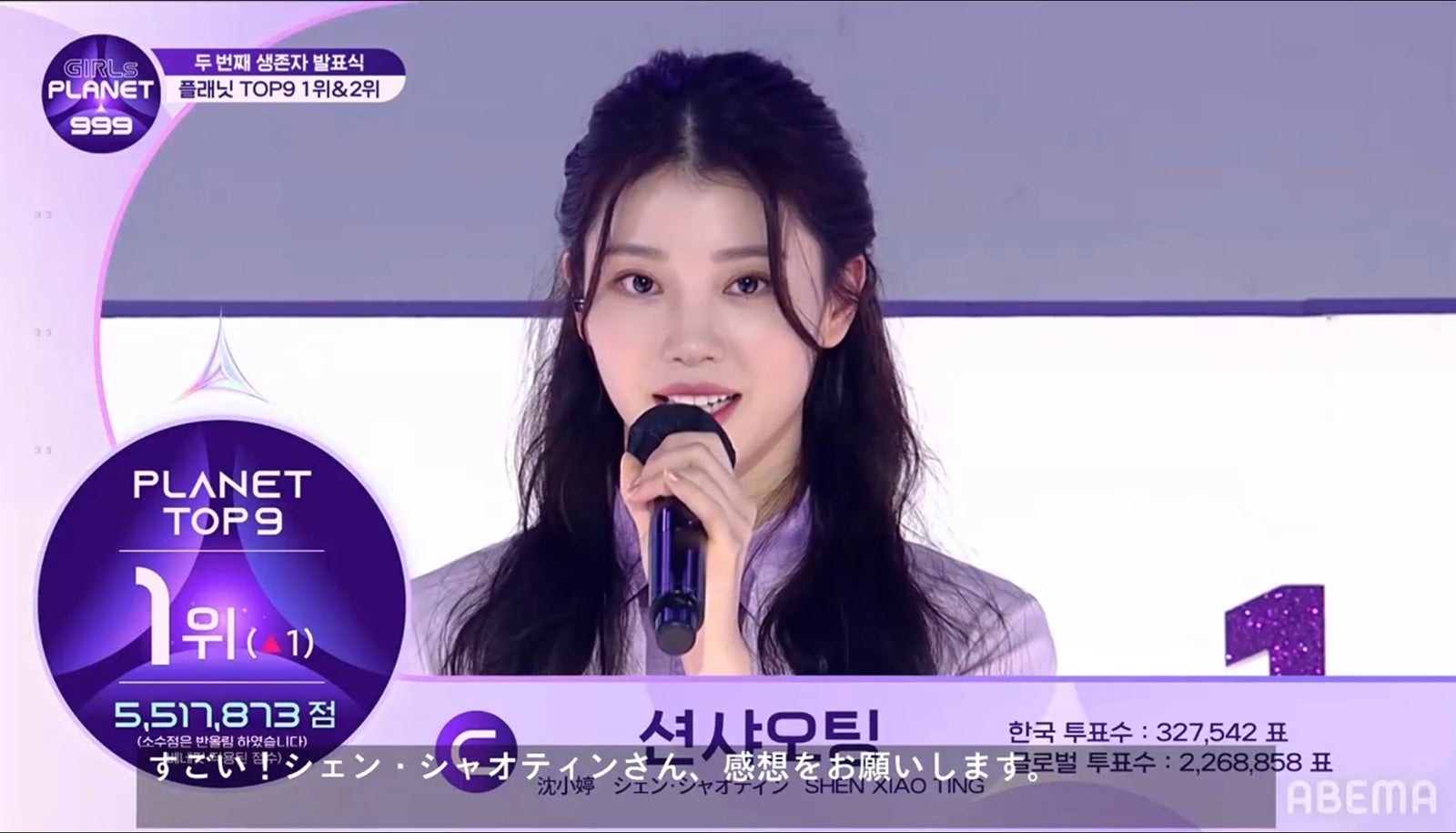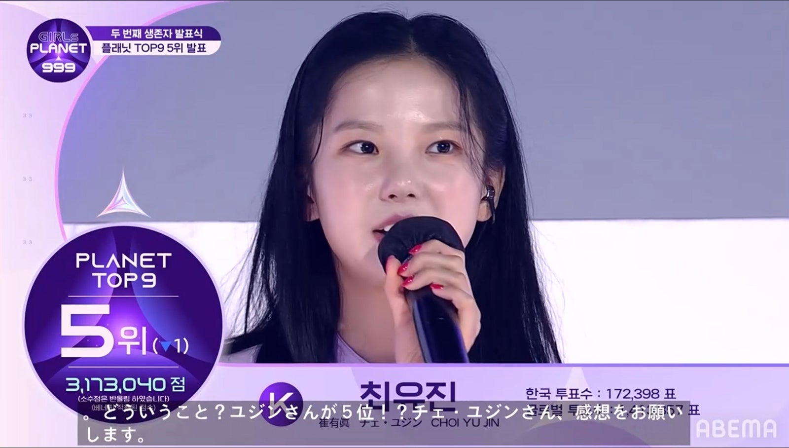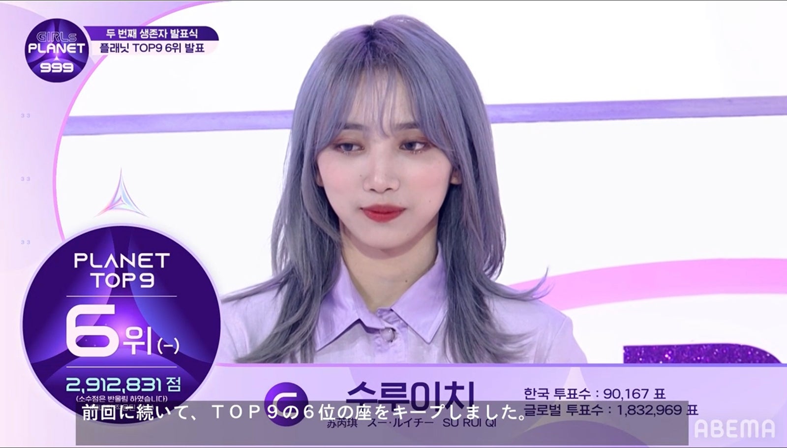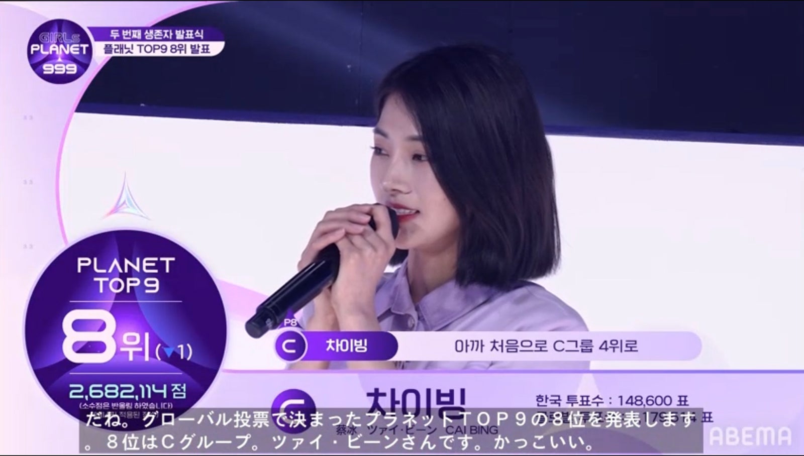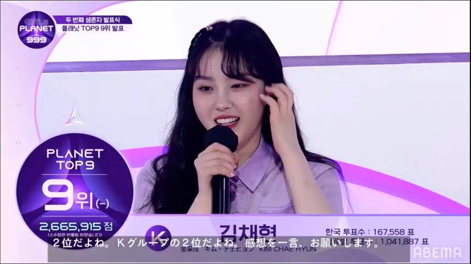 24日、グローバルガールズグループデビュープロジェクト「Girls Planet 999 : 少女祭典」(以下、Girls Planet 999/毎週金曜よる8時20分~日韓中同時、日本語字幕付き国内独占無料放送)の第8話がABEMAにて放送。第2回生存者発表式が行われ、2つ目のミッション「コンビネーションミッション」を終えた54名(日本(Jグループ)、韓国(Kグループ)、中国(Cグループ)各18名)の中から、グローバル視聴者投票の結果により次のステージに勝ち進むことができる27名と、新たなTOP9の順位が発表された。