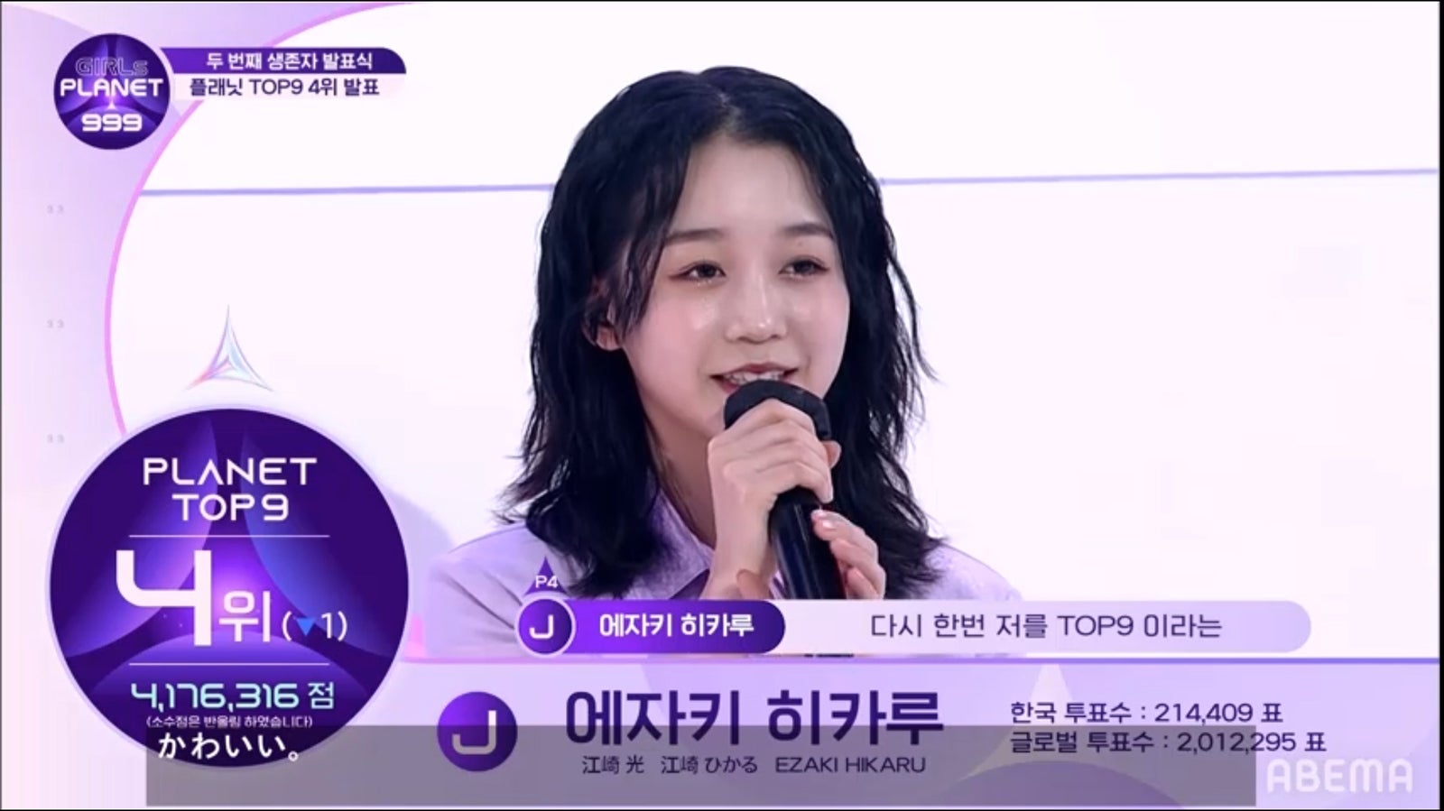 4位:江崎ひかる(J)4,176,316票 ↓1