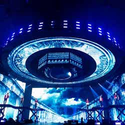 今回の公演はその『ODDINARY』がモチーフに。メインステージには収録曲である「VENOM」が象徴するように “スパイダーセット”なる蜘蛛をテーマとした巨大な円形のセットが設置され、迫力と怪しげな雰囲気で観客を引き込む。