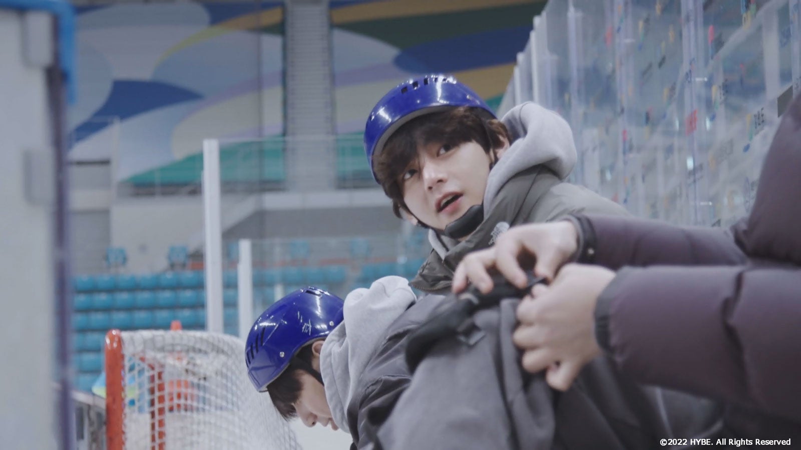 旅プランの話し合いで、アイススケートがやりたいと発案したテテ(V)。「自分が得意だから薦めるの?」「腕前をみてやろう」とのいじりもありつつ、笑顔で「注目されたいからじゃなく、一緒にやればおもしろいからだよ」と制してプラン決行したものの―。スケートリンクに降り立ったテテは最初からぎこちなさ全開。他の4人がすぐさまコツを掴み、すいすい滑っていくのを横目に「僕が一番下手だなんて思いもしなかった」と笑顔でぼやくなど、本人も想定外だった様子。