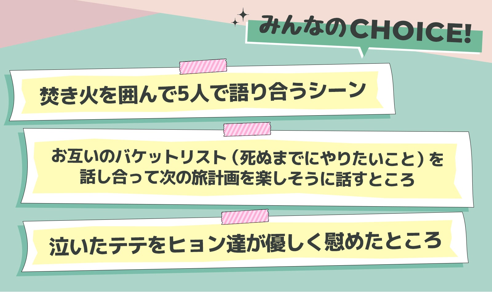 ・「5人の出会いや、絆を深めたオンラインゲームのエピソード、済州島旅行のテテのサプライズなど、お互いに関することをみんなが全部覚えていて愛おしい」