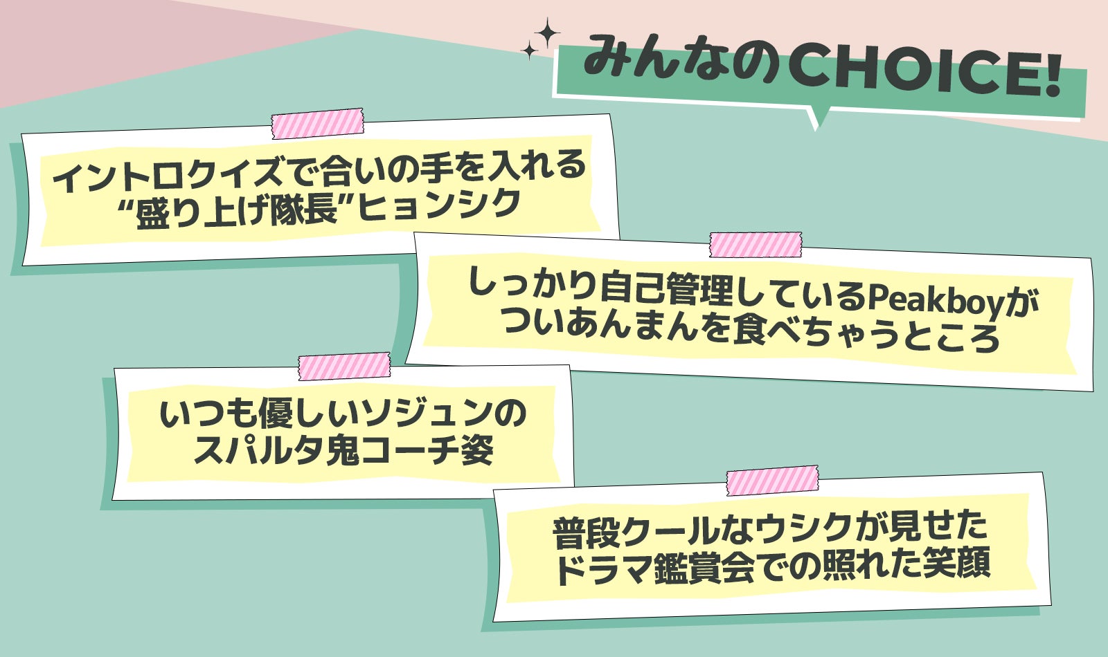 ・「ソジュンがトレーニングでピクボ(Peakboy)に鬼コーチっぷりを発揮していて、こんな一面があったんだと驚き」