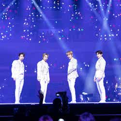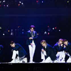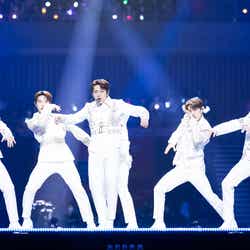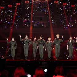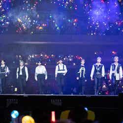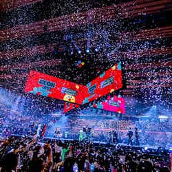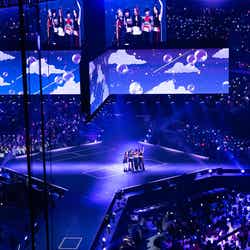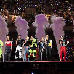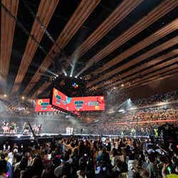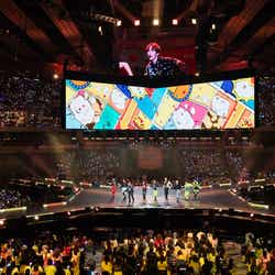 NMIXXが初来日ステージを飾ったほか、LE SSERAFIMがEXOの楽曲「Love Shot」をカバー、最後には全アーティストがステージに集結し、グループの垣根を超えて客席の近くでファンへ手を振るなど感謝を伝えていた。