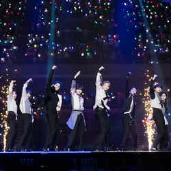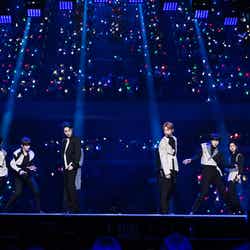 その後は「Shooting Star」「Stride」と続けて披露。「Shooting Star」では疾走感溢れるサウンドに力強い歌詞を乗せ、「Stride」では花道にメンバーが散らばり、ファンの近くで愛を届けた。