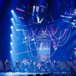 Stray Kidsは、個性的で独創性溢れるパフォーマンスを披露。「a strange incident」で幕を開けるとまるでステージがモンスターに襲われたかのような大胆な映像演出で魅了。そして鋭いHYUNJIN(ヒョンジン)の視線で観客を惹きつけた後は「VENOM」へ。その後のVCRでの、FELIX(フィリックス)が奇妙な実験室に閉じ込められる演出を経て、センターステージまで走り抜けると「MANIAC」がスタート。普段とは一味異なるヘビーメタルVer.で会場のボルテージを最高潮まで高め、大トリにふさわしい豪華なステージを仕立て上げていた。