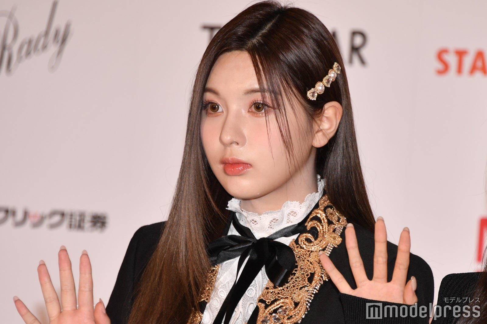 同グループは9日にメンバーのジニが脱退することを発表。今後は6人体制で活動していくことを明らかにしていた。ブラックの上品なテキスタイルをベースにゴールドの刺繍やきらびやかなビジューが散りばめられたスタイリングで登場。